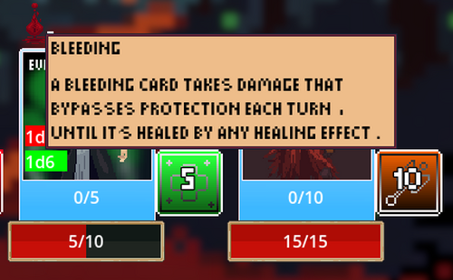 In the image, you can see the description of one of the new effects, Bleeding, which deals damage each turn until it’s healed.